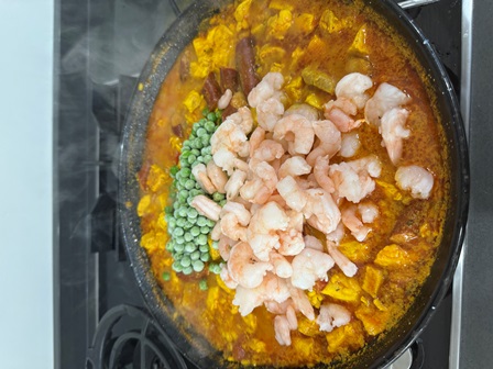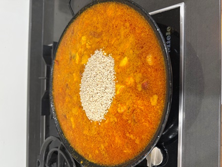 5. Add Fish/Prawns/Vegetables to Pan when Rice 80-90% Cooked